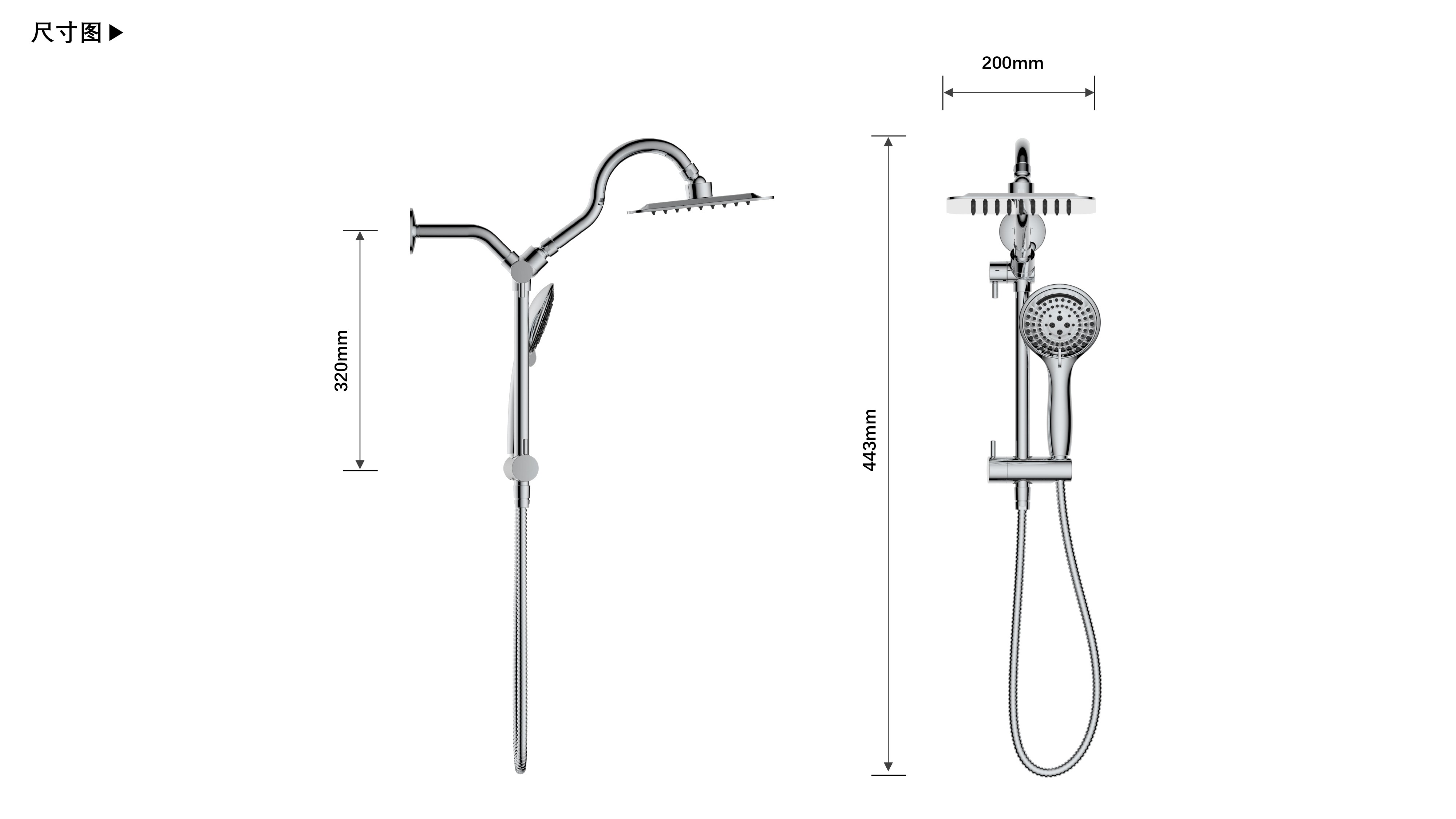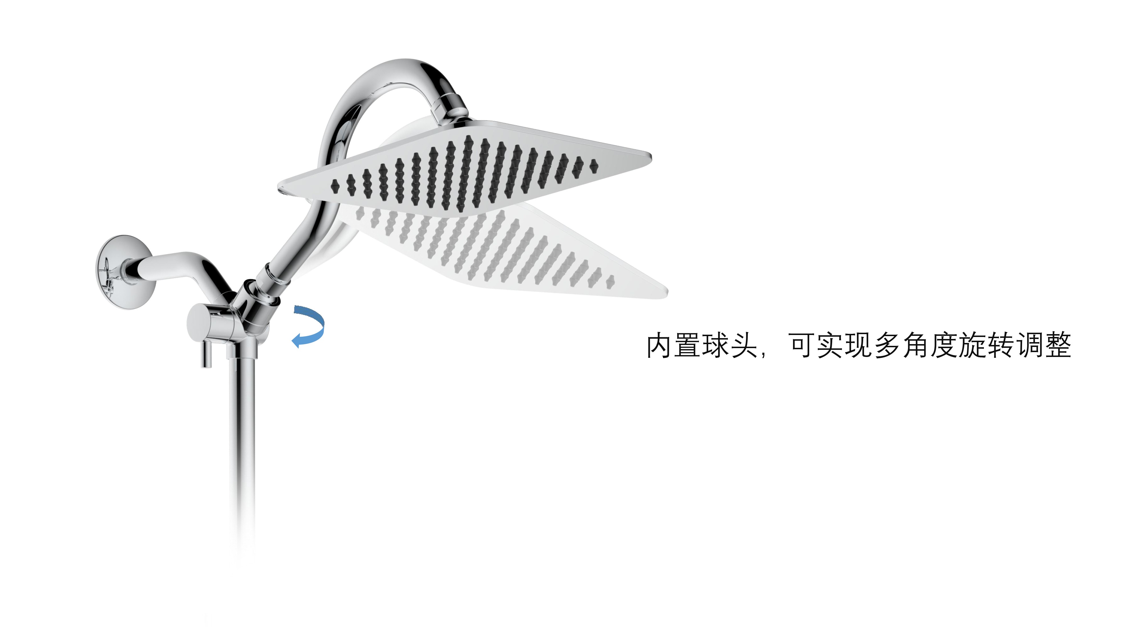 上出水彎管套裝;頂噴內(nèi)置球頭,可實(shí)現(xiàn)多角度旋轉(zhuǎn)調(diào)整;把手切換頂噴出水、花灑出水;轉(zhuǎn)動把手調(diào)節(jié)滑座高低