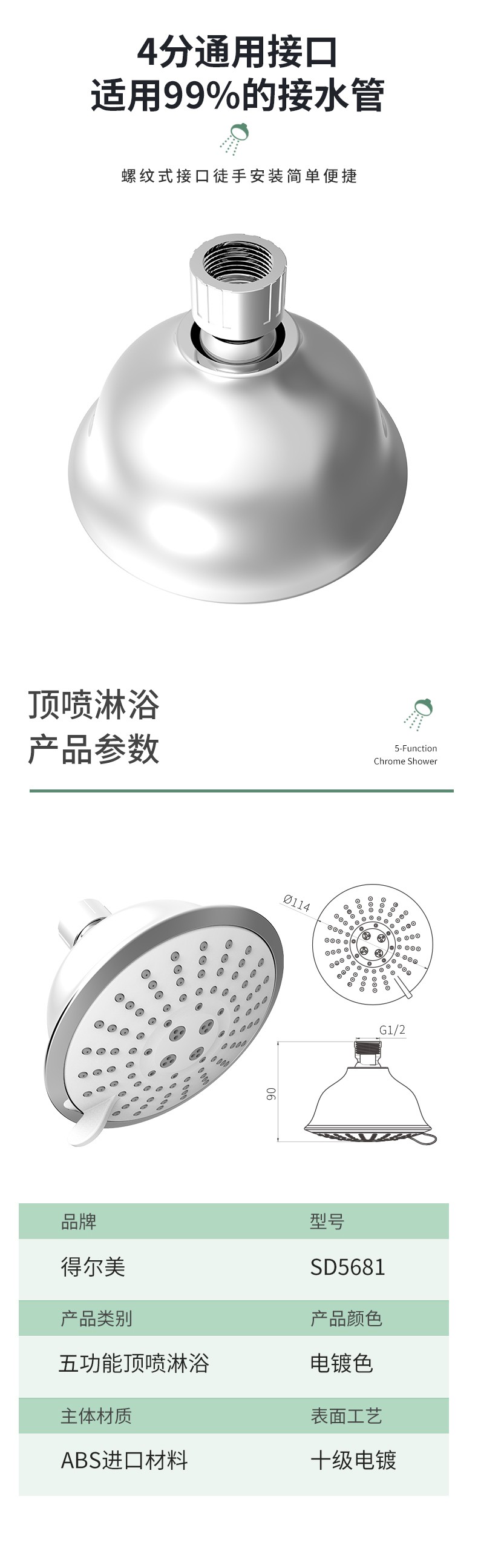 SD5681 5功能蓮蓬頭