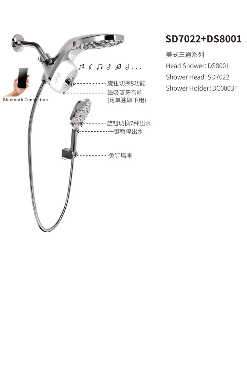 SD7022-DS8001 藍牙音樂淋浴